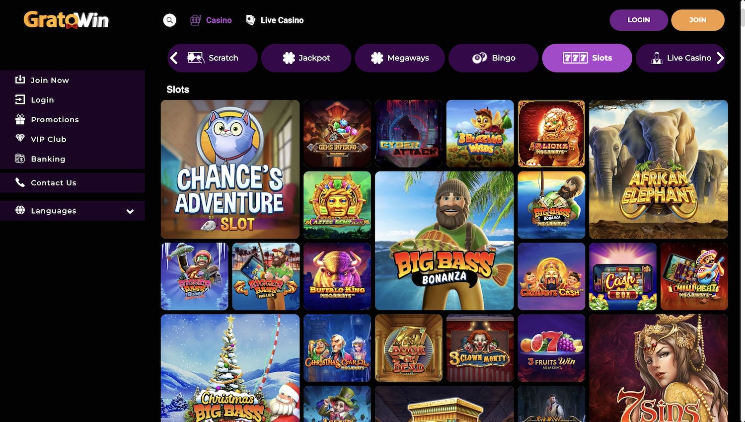 Il sito di GratoWin Casino offre un’ampia gamma di giochi a cui i giocatori possono accedere. Le slot online sono suddivise in diverse categorie e, fin dall’inizio, è possibile scegliere tra giochi a premi, nuove uscite, megaways o giocatori di alto livello.
